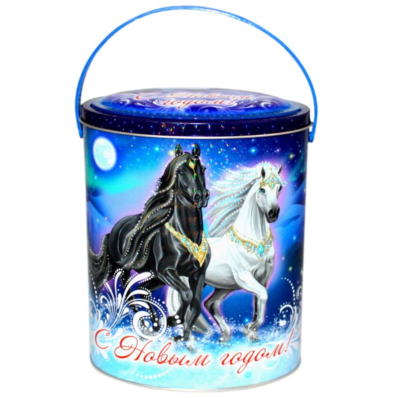 Сладкий новогодний подарок в жестяной упаковке весом 950 грамм