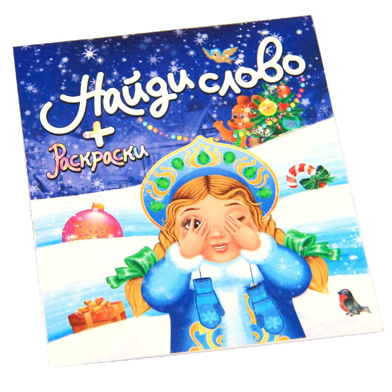 Новогодняя раскраска с заданиями из плотной бумаги на тетрадной скрепке, 8 листов.