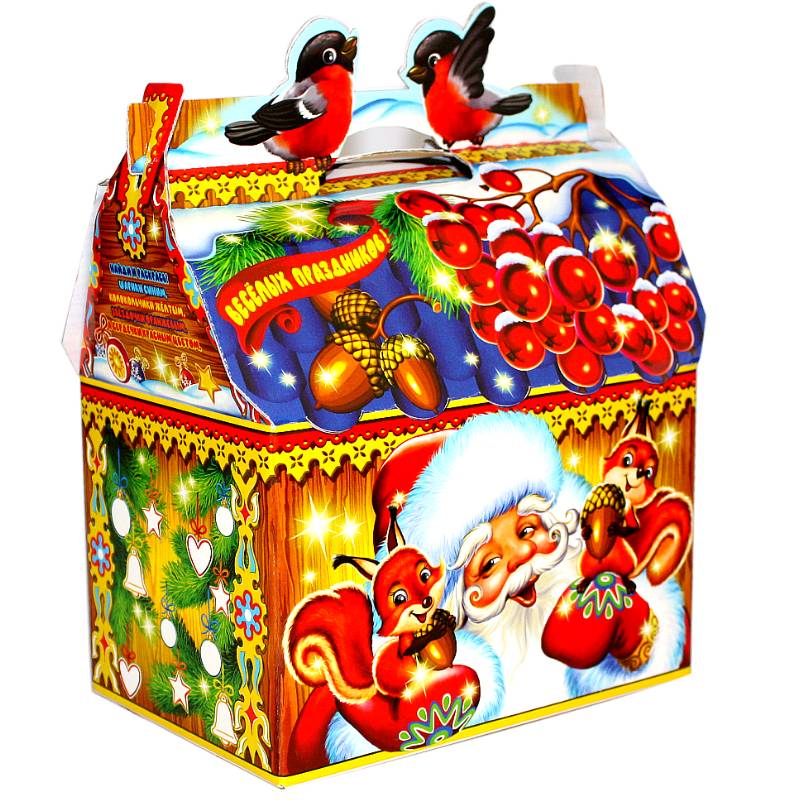 Сладкий новогодний подарок в картонной упаковке весом 1000 грамм