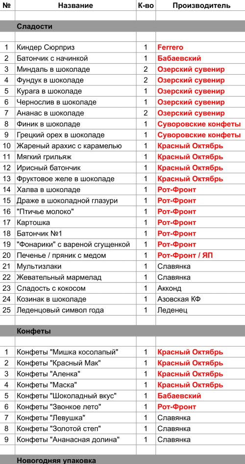 Опубликовано в Составы подарков