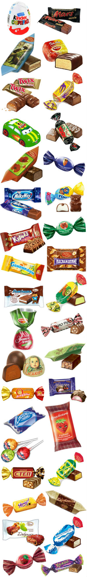 Конфеты "Наслаждение" (1 шт), Конфеты "Мишка косолапый" (1 шт), Конфеты "Цитрон" (1 шт), Конфеты "Мягкий грильяж " (1 шт), Конфеты "Маска" (1 шт), Конфеты "Ореховая роща" (1 шт), Конфеты "Аленка" (1 шт), Конфеты "Toффи" (1 шт), Конфеты "Желейные" (1 шт), Конфеты "Буревестник"(1 шт), Конфеты "Золотой ключик" (1 шт), Конфеты "Ласточка" (1 шт)