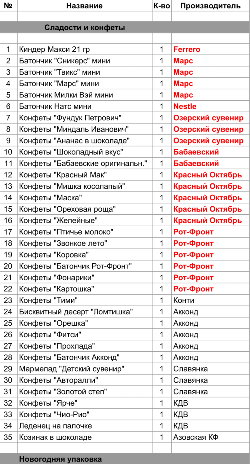 Опубликовано в Составы подарков