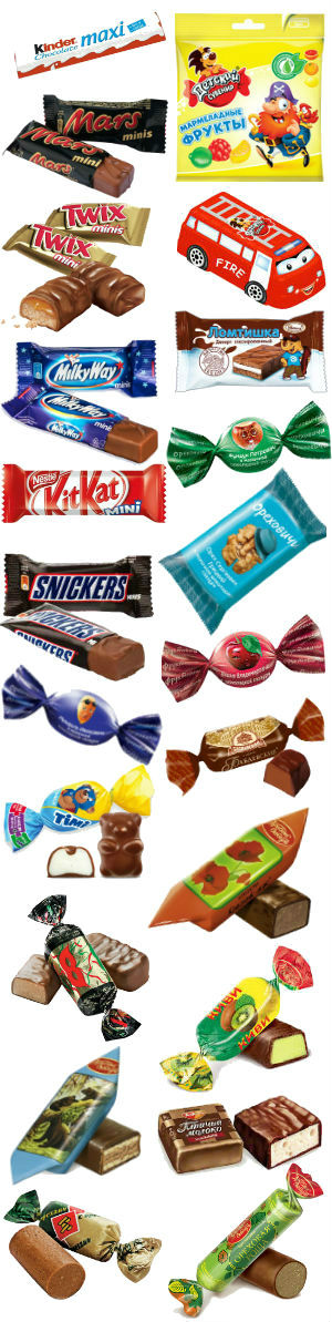 Конфеты "Красный Мак" (1 шт), Конфеты "Мишка косолапый" (1 шт), Конфеты "Маска" (1 шт), Конфеты "Ореховая роща" (1 шт), Конфеты "Желейные" (1 шт)
