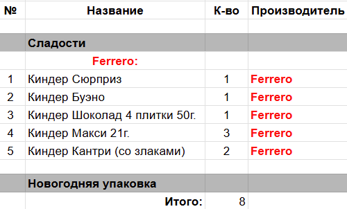 Опубликовано в Составы подарков
